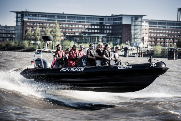 Das Team der RIB-Piraten war sehr nett und locker. Habe mich sicher gefühlt auch bei 45 kn da Profis am Werk sind, es ist ein besonderes Erlebnis mit den Booten über die Elbe zu preschen, ein Riesenspaß und Hamburg vom Wasser aus zu sehen ist eh immer eine Perle.