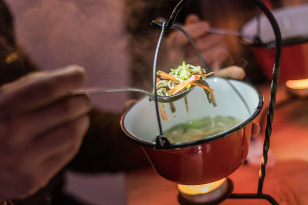 Dopo il giro con le ciaspole sarebbe meglio mangiare al caldo, magari due bull del acqua calda in più sarebbe meglio.